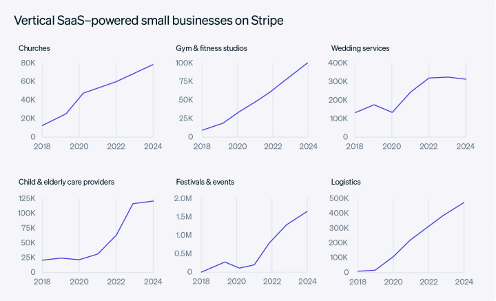 60% of U.S. small businesses use vertical SaaS (e.g., Slice for pizzerias, Jobber for home services), with 6.3% of first-year companies reaching $1M in revenue.
