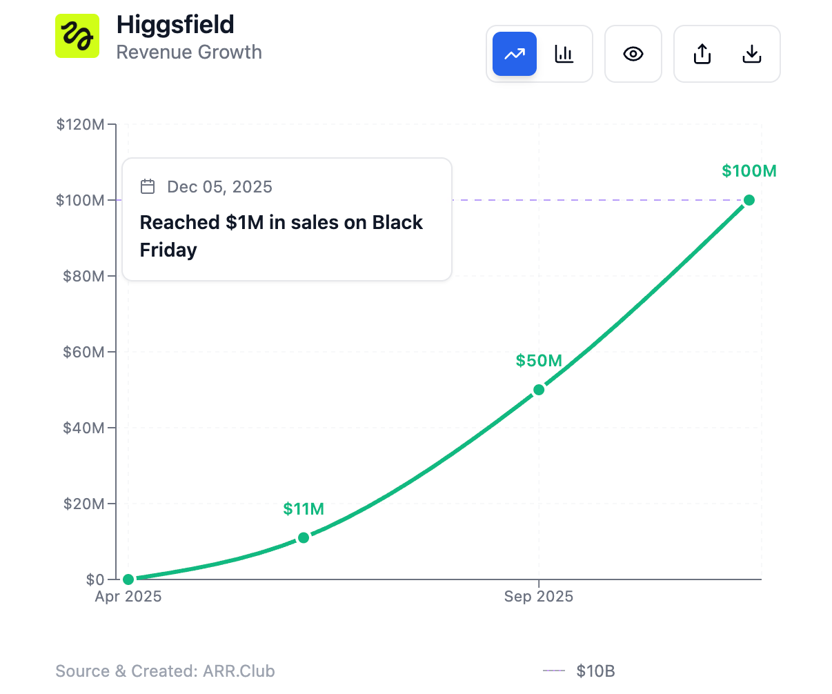 While hit $50M Run Rate 3 months ago, Higgsfield has now officially hit $100M ARR, and reached $1 million in sales on Black Friday.