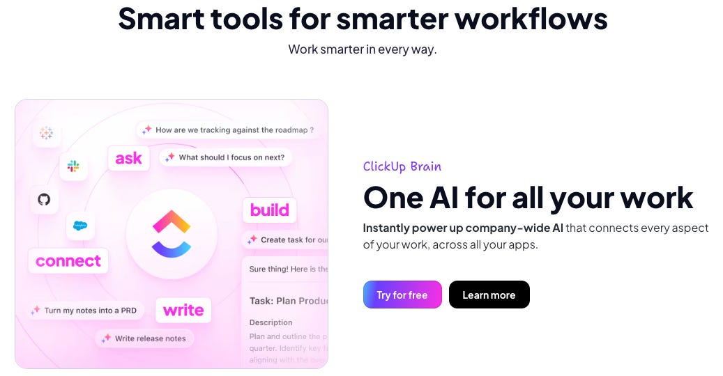 Today, ClickUp announced that it has surpassed $300M ARR. What’s notable is that ClickUp is sticking to its original SaaS philosophy even in the AI era: one AI to replace them all.