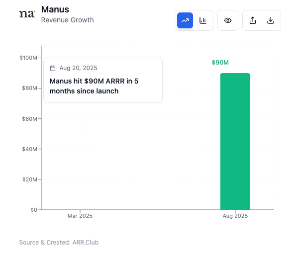 According to Peak, Manus’ annual revenue run rate(ARRR) has already surpassed $90 million and is on track to hit $100 million soon.