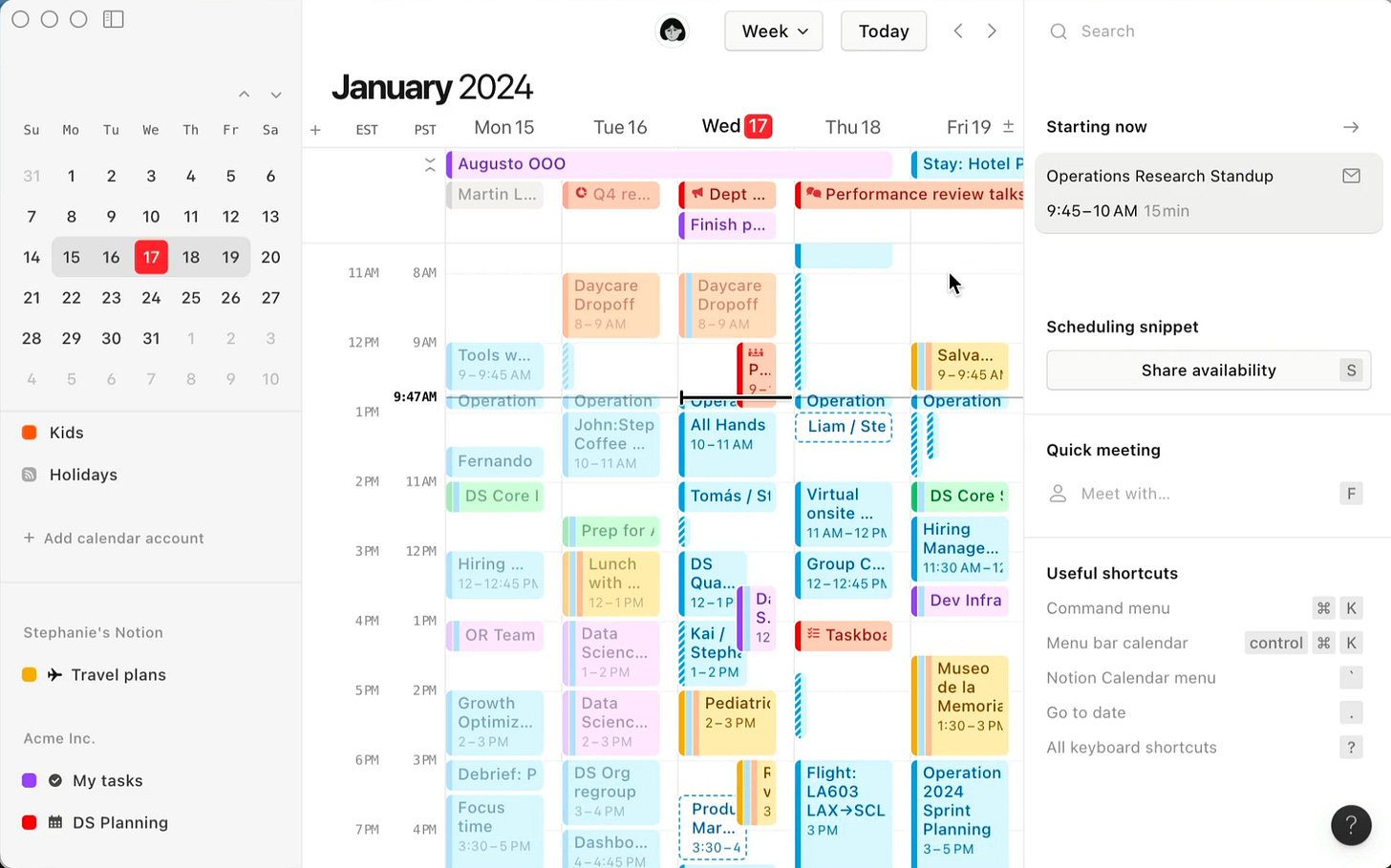 Most features of the Notion Calendar are derived from Cron, and some are very impressive, such as: