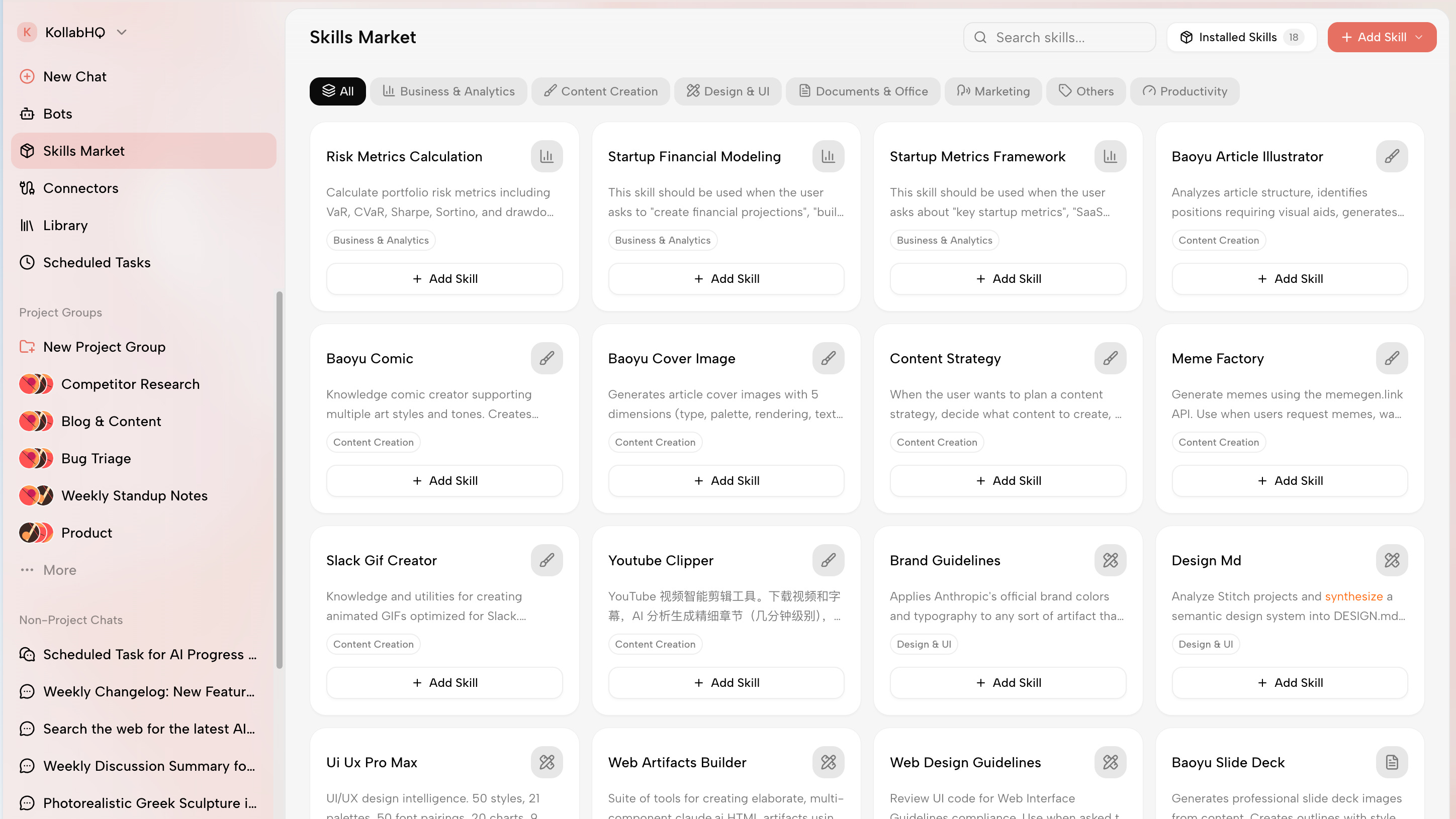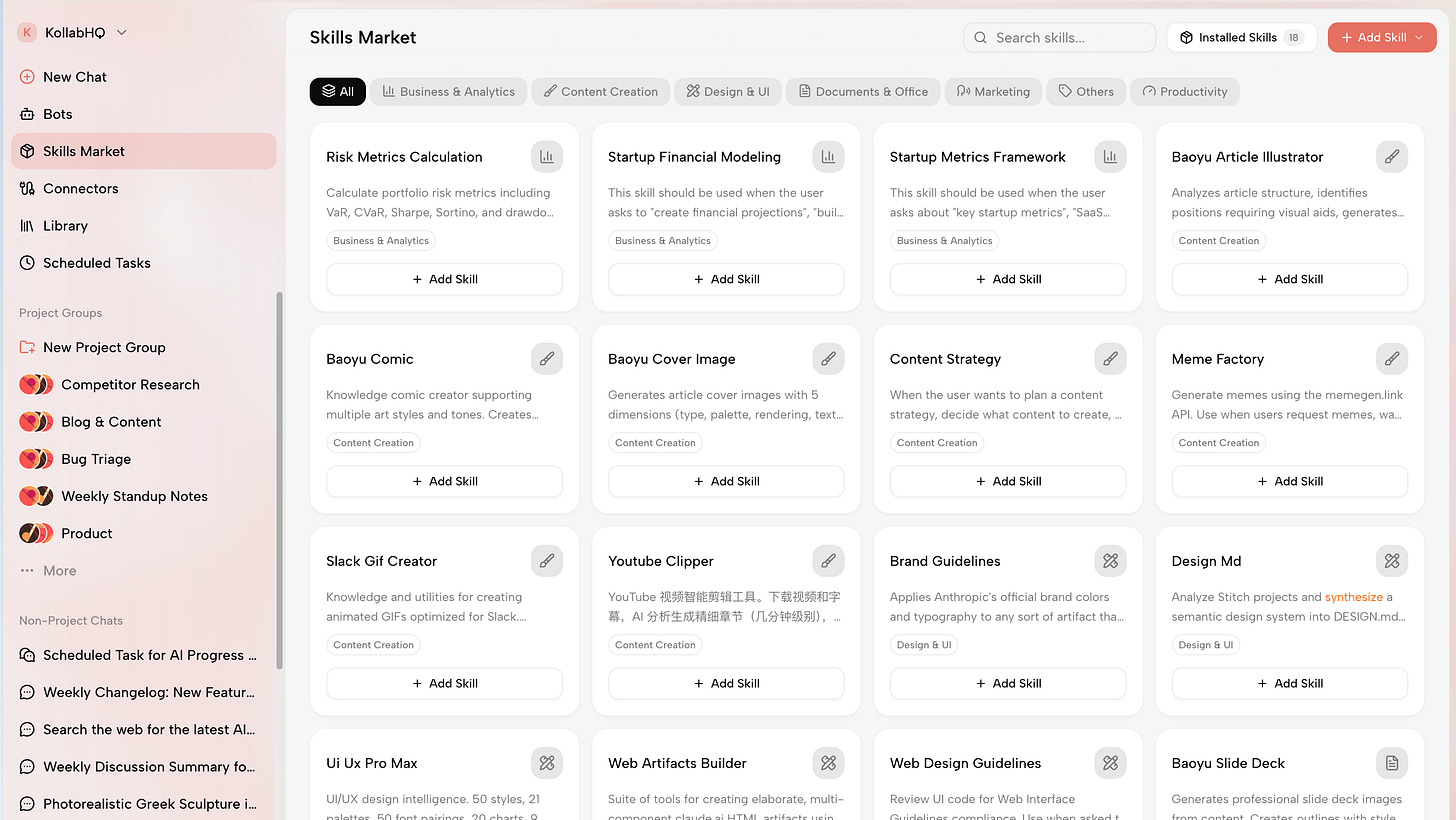 Kollab turns repeatable workflows into reusable Skills—things like: