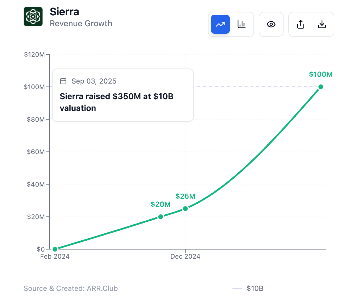 According to the founders, Sierra surpassed $100M ARR seven quarters after launch, far faster than expected.