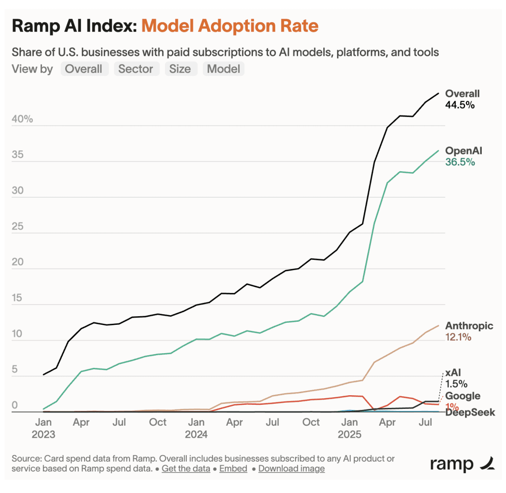 Anthropic’s rapid rise has been fueled by its focus on coding and agent capabilities. It now dominates the emerging space of agentic coding, and its product Claude Code has become the fastest-growing offering in that category—reaching $400 million in ARR within just six months. After Claude 4 launched, revenue grew fivefold in two months.