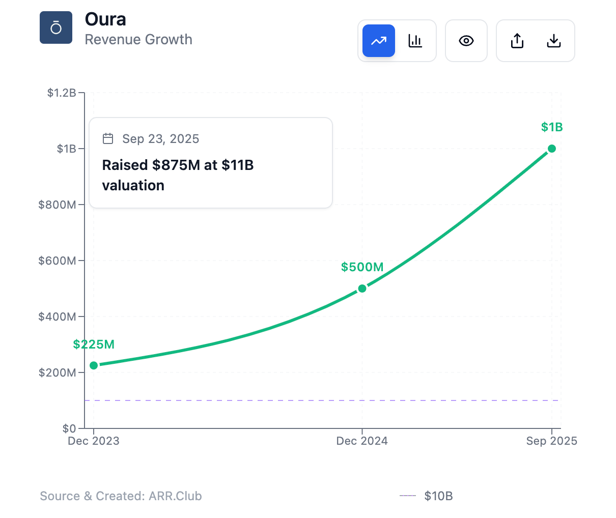 While revenue is not always strictly equal to ARR, in Oura’s case the recurring membership/subscription component (for ring users) contributes significantly to its revenue, making the revenue figure a very strong proxy for its ARR.